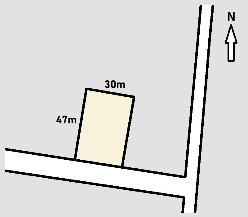 ok. 30m x 47m jest płaski i dobrze nasłoneczniony. Działka częściowo porośnięta niedużymi drzewami.