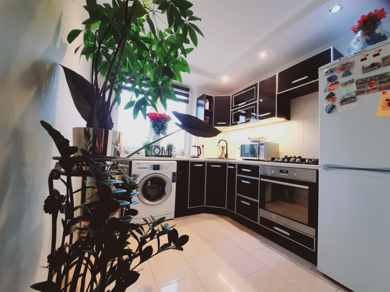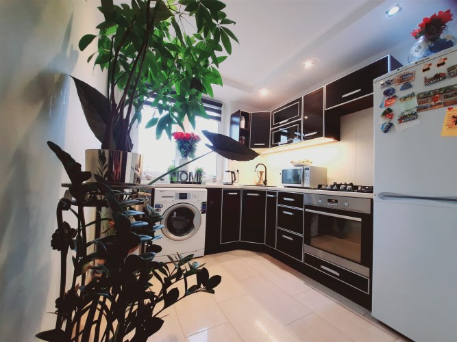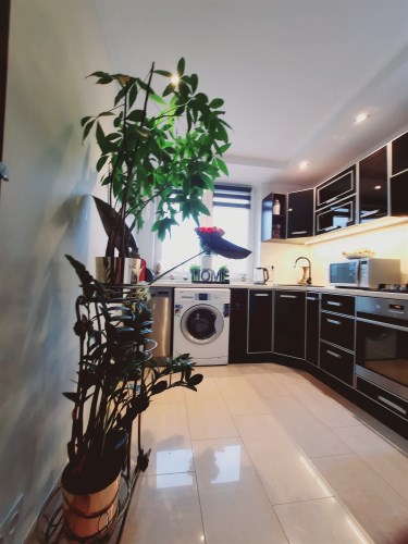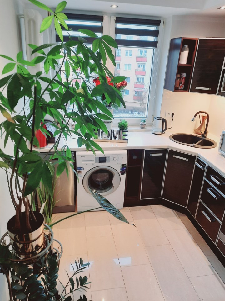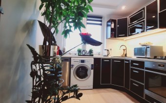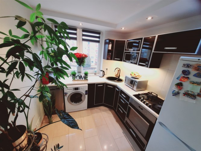 W cenie mieszkania zostają zabudowy stałe, meble oraz sprzęt AGD i RTV: lodówka, zmywarka, pralka, mikrofalówka, piekarnik, kuchenka gazowa, okap, dwa telewizory (wszystko widoczne na zdjęciach).