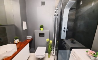 Mieszkanie jest w bardzo dobrym stanie technicznym – wysoki standard, środkowe. Wnętrze wykończone zostało drogimi materiałami wysokiej jakości.