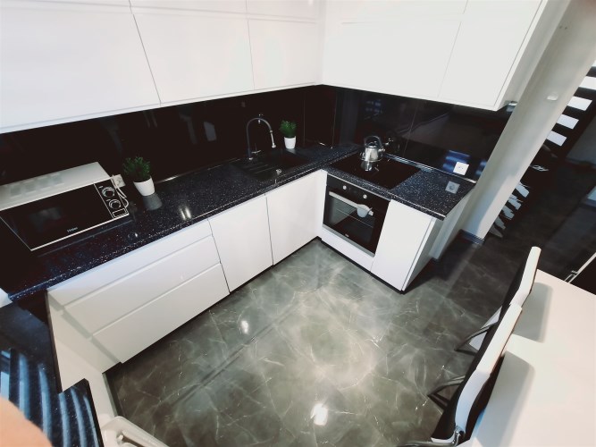 Mieszkanie jest w bardzo dobrym stanie technicznym – wysoki standard, środkowe i dwustronne. Wnętrze wykończone zostało drogimi materiałami wysokiej jakości.