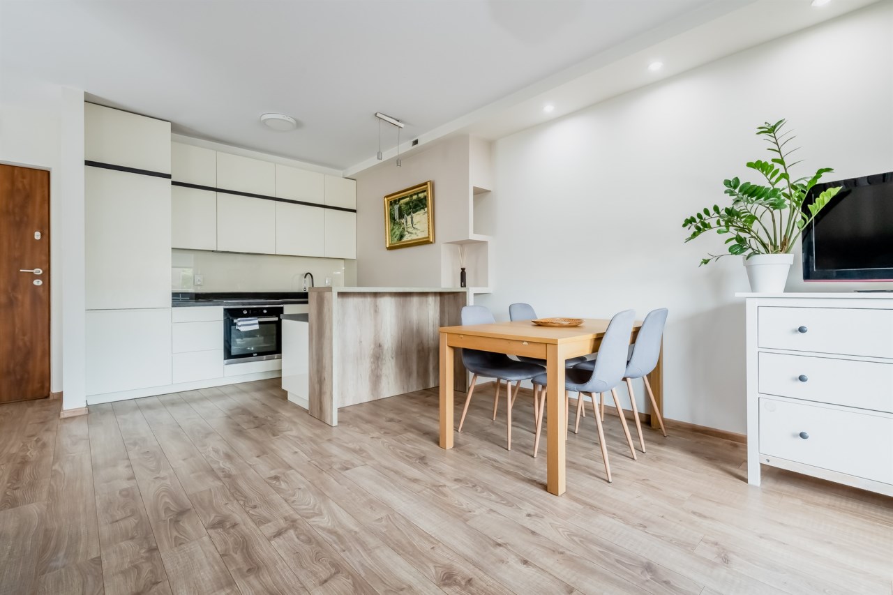 - 41 m² powierzchni – 2 pokoje: salon z aneksem + osobna sypialnia