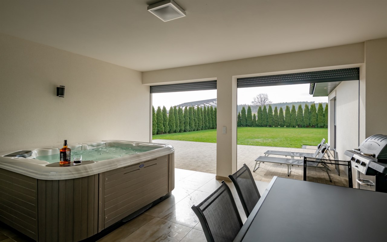 Do pełni szczęścia nowym nabywcom będzie służył duży zadaszony taras, wraz z zestawem mebli ogrodowych oraz całoroczne jacuzzi.