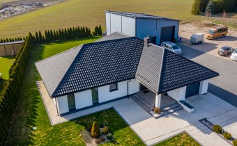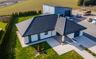 - Budynek wolnostojący parterowy o powierzchni użytkowej 140,2m2 (całkowita: 170m).