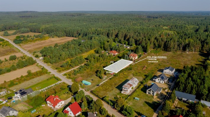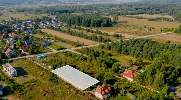 Działka znajdujące się w spokojnej i malowniczej okolicy. Wokół parceli rozciągają się zielone tereny oraz las znajdujący się nieopodal. Okolica pozwala na odpoczynek na łonie natury zdala od miejskiego zgiełku.