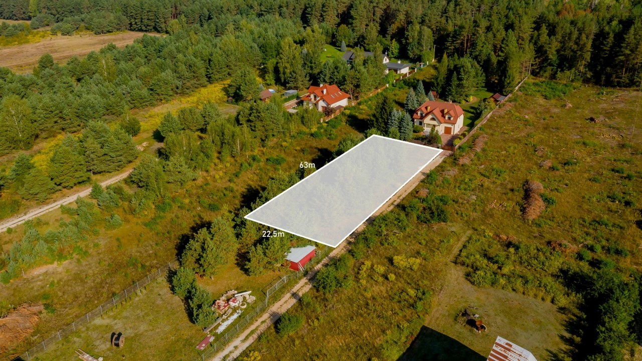 Działka o powierzchni 1411m2 i wymiarach 22,5m x 63m