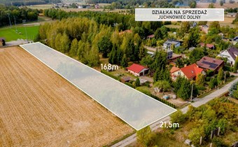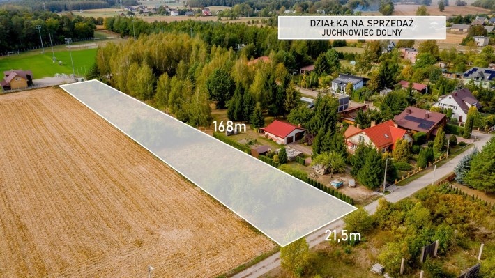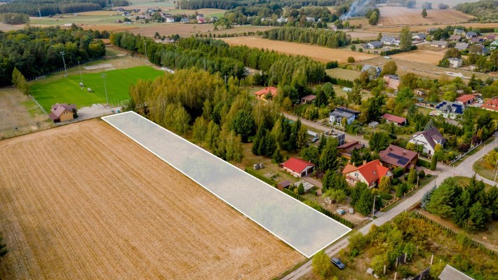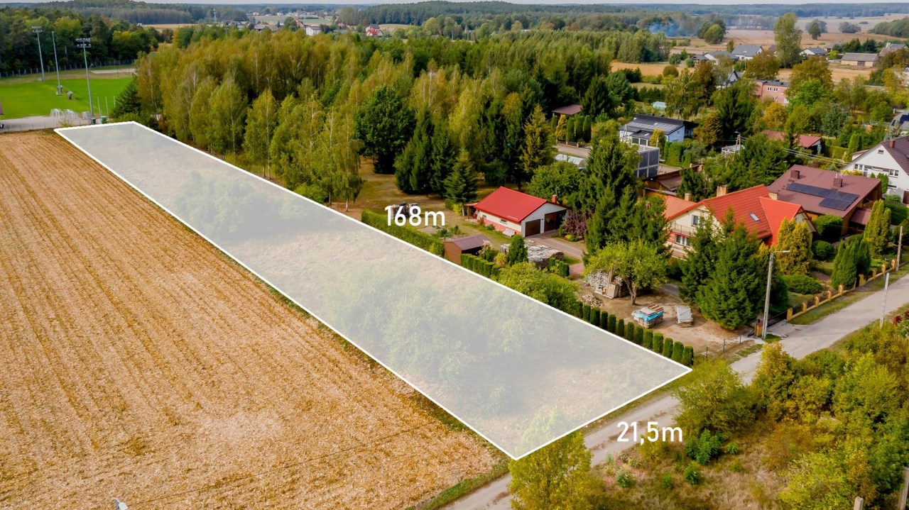 Działka o powierzchni 3632m2 i wymiarach 21,5m x 168m