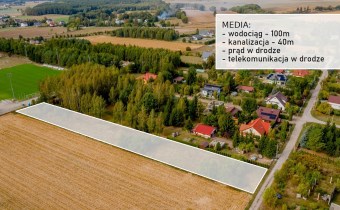 - kanalizacja i wodociąg w odległości ok. 30m, prąd bezpośrednio przy działce.