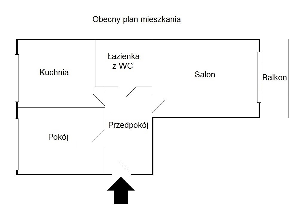 Po niewielkiej modyfikacji mieszkania - można uzyskać 3 pokoje z aneksem kuchennym (widoczne na planie).