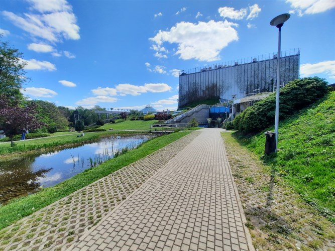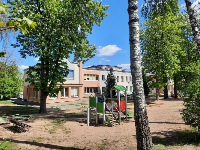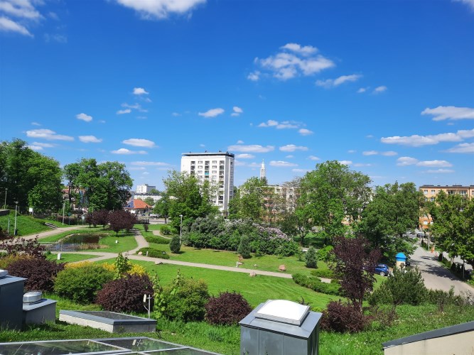 Wokół budynku znajduje się zieleń i tereny rekreacyjne, park.
