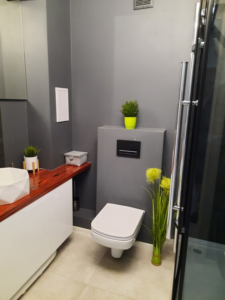 Mieszkanie jest w bardzo dobrym stanie technicznym – wysoki standard, środkowe. Wnętrze wykończone zostało drogimi materiałami wysokiej jakości.
