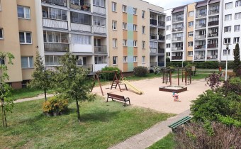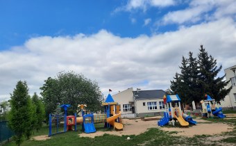 Przed budynkiem znajduje się dziedziniec z placem zabaw.