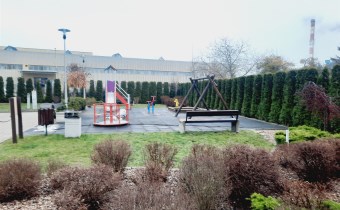 Przed budynkiem znajduje się dziedziniec z placem zabaw.