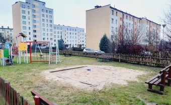 Przed budynkiem znajduje się dziedziniec z placem zabaw.