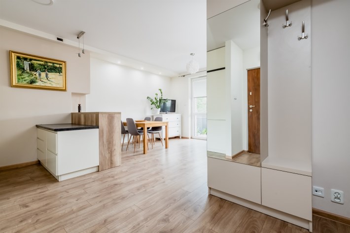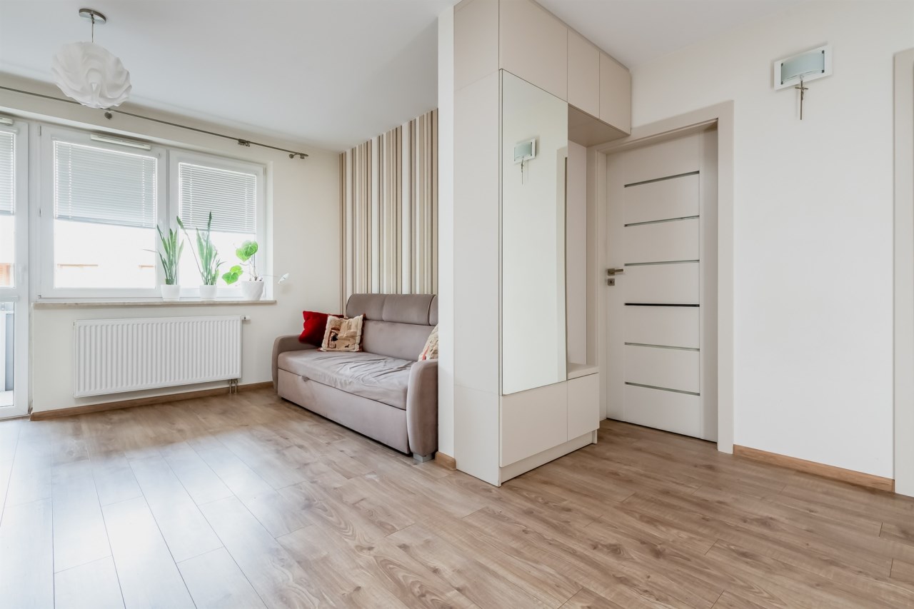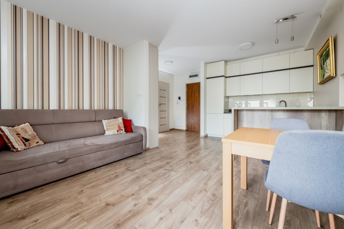 - 41 m² powierzchni – 2 pokoje: salon z aneksem + osobna sypialnia