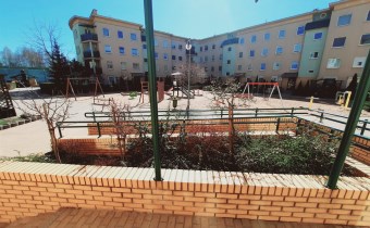 Przed budynkiem znajduje się dziedziniec z placem zabaw.